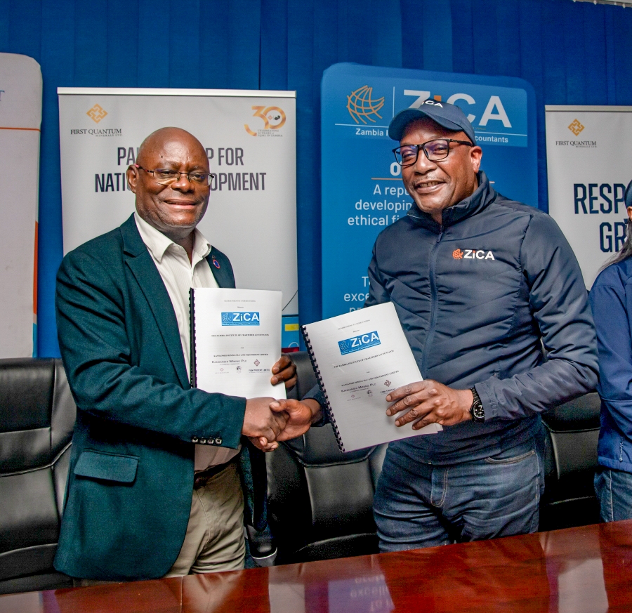 LUSAKA ZAMBIA – First Quantum and the Zambia Institute of Chartered Accountants (ZICA) have today signed two Memoranda of Understanding (MOU) designed to significantly enhance the training, accreditation, and continuous professional development of accountants in Zambia.